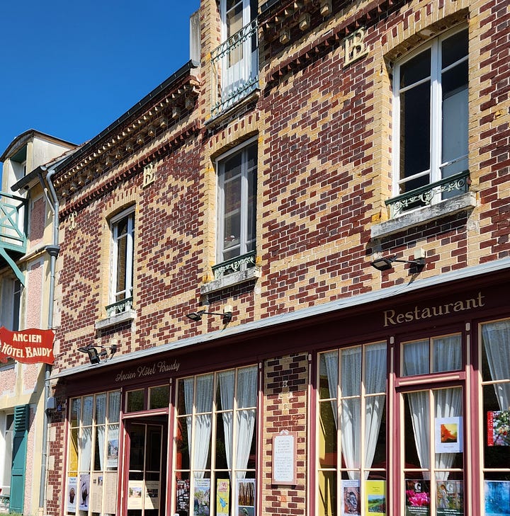 A few hundred yards along the main street of Giverny, just across from the Ancien Hôtel Baudy, where so many of the early artists stayed on their excursions to the town, I stopped at a shop and showed the shopkeeper a photo of one of Cherry’s watercolors, asking, in my painful (but serviceable, it appears) French if she recognized the spot. And I explained why I hoped to find it, emphasizing Cherry’s early stays in Giverny.