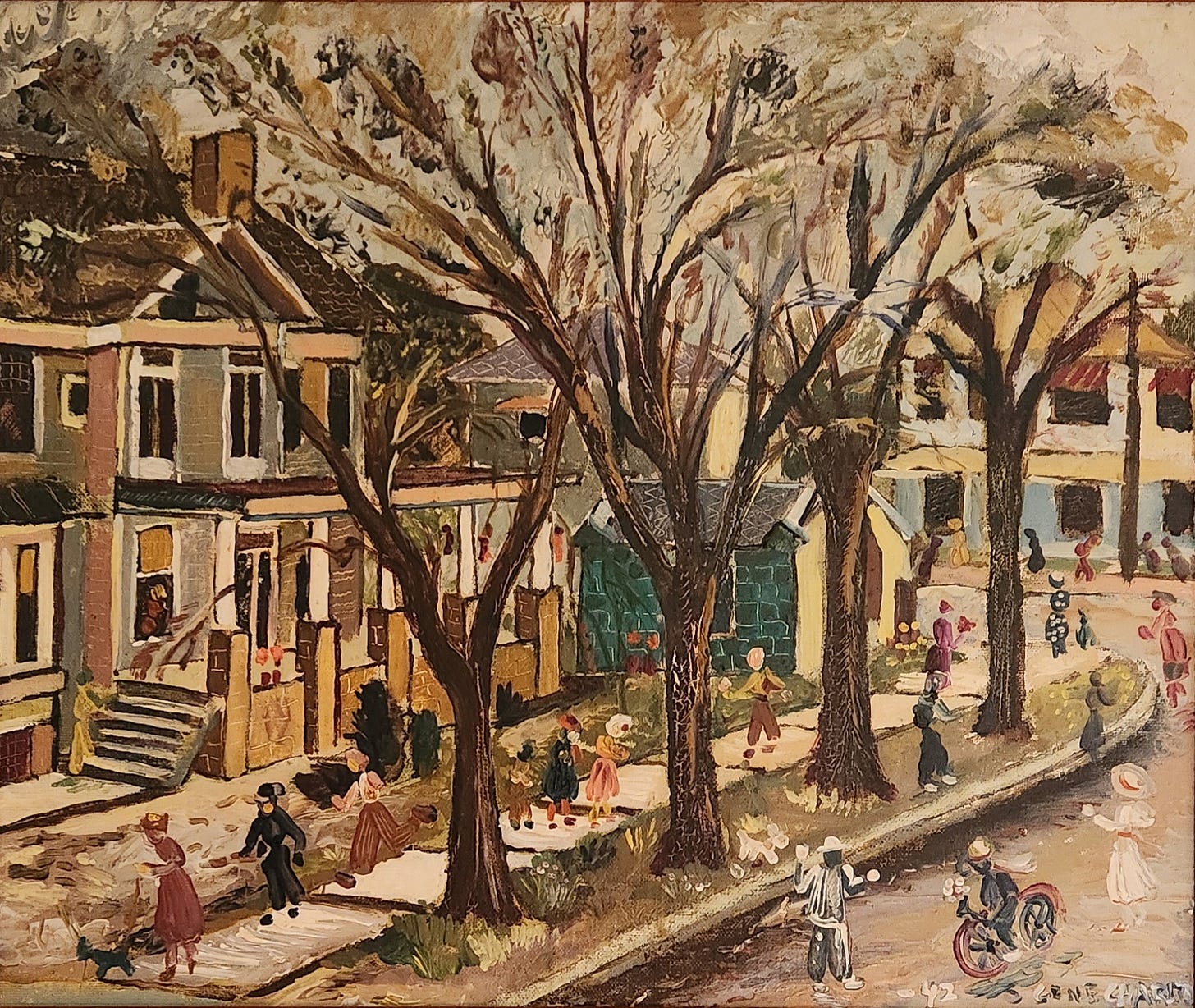 Charlton Les Sylphides 1942 oil on board (above); [Street Scene] c.early 1940s oil (below).