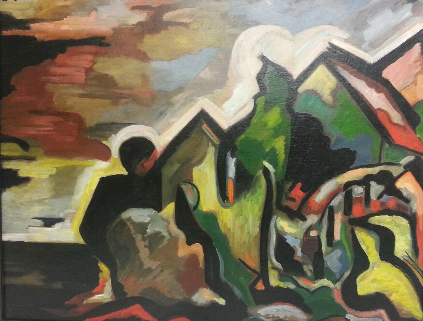 While in England Charlton made contact with members of the neo-romantic group prominent there at the time, including the Scottish couple, Robert Colquhoun and Robert MacBryde. Colquhoun even gave Charlton one of his paintings. Clearly the art and artists he encountered in England, and on trips to New York in the immediate post-war period, had a significant impact on his work. He embraced the flatness of the canvas and became a bolder colorist.