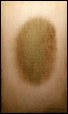 Charlton [Green spot on Pink] 1961 dry pigment on panel (top); Roman Festival 1969 (below).