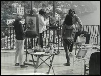 Charlton with students in Positano, Italy, c.1970s (above); Charlton drawing of Positano, c.1970s (below).