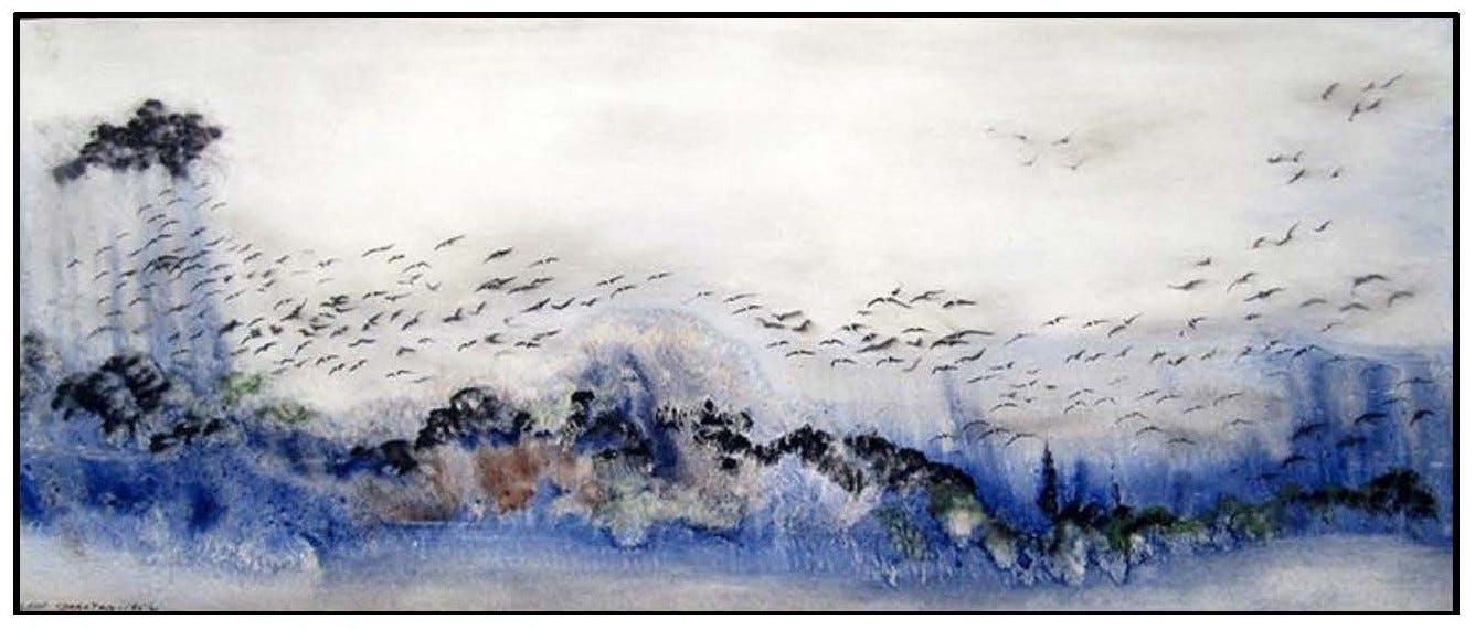 By the early 1950s, Charlton’s confidence seemed to be vindicated. He had three one-artist shows in New York between 1947 and 1954, including one at the prestigious Willard Gallery. One of his paintings from that show, Sunset Japan, was featured in the New York Times.[4] The still young, but already astute, critic Dore Ashton, noted in Art Digest, in her review of the show, that, “The artist has seen very distinctly, and felt deeply.”[5] He was also showing in group exhibitions with Mark Rothko, Mark Tobey, and sculptor David Smith.
