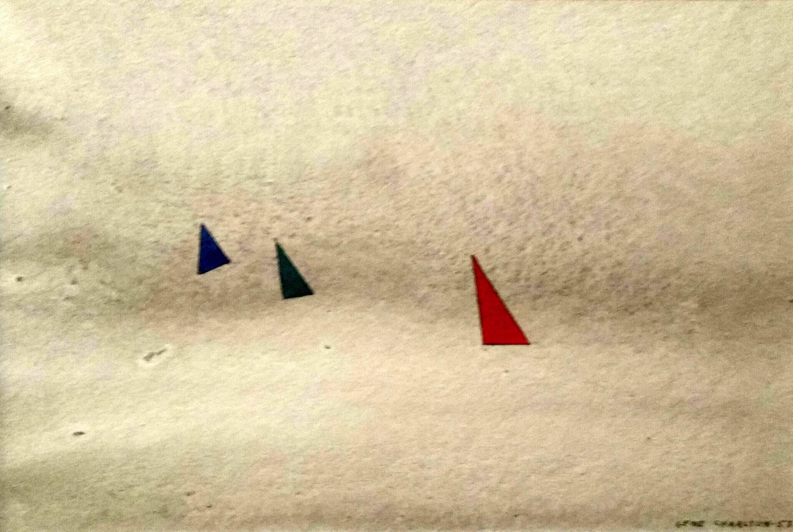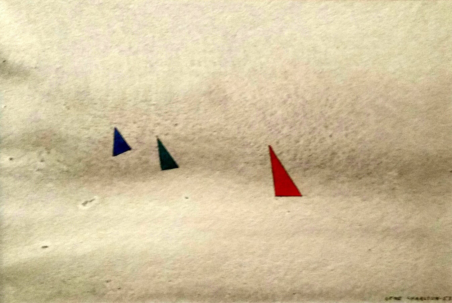 [Blue Green Red, three triangles], ink, graphite and wash on paper, 1953.