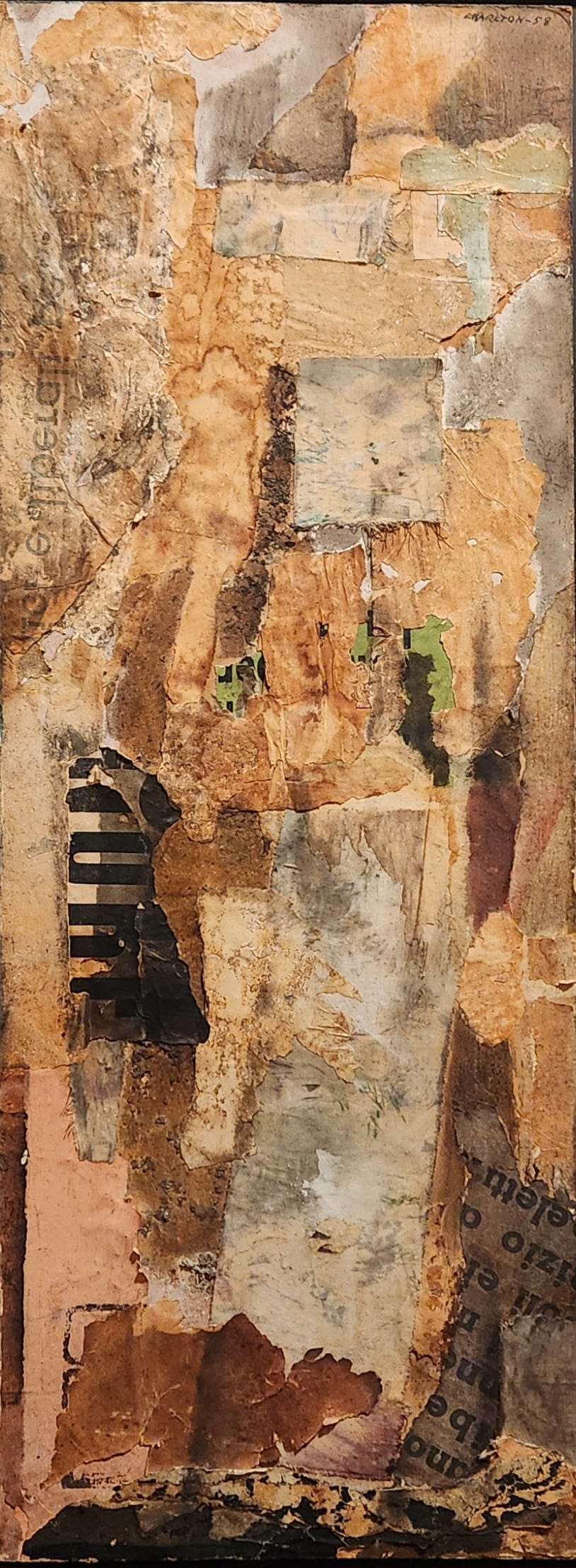 According to his wife, Charlton’s last years were good ones, with summers spent in Positano and winters in Rome or London. He returned to Houston only once, when his mother died, but on the trip he arranged for another Houston show, at Kathryn Swenson’s New Arts Gallery, where he showed his ripped-from-the-walls-of-Rome collages jointly with Gertrude Barnstone’s Plexiglass sculptures. The de Menils bought several of his collages from the show, now in the Menil Collection permanent collection, similar to these.