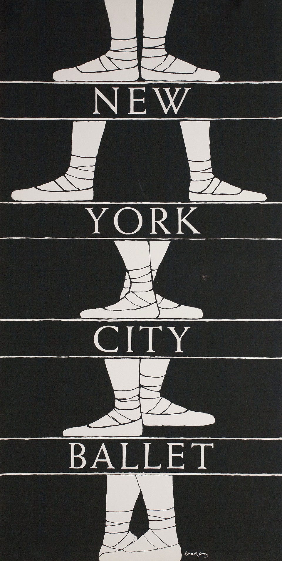 On jaunts to New York through the late ‘70s – more for the gay discos than the ballets, admittedly, but you had to do something before the bars got hot – I saw Balanchine-conjured Festivals at the New York State Theater (as was then) – something old, something new, but all golden (nothing blue) – season after season, year after year. I even bought my signed Edward Gorey New York City Ballet poster on the spot. Those were the days when ballet companies toured the nation (New York City Ballet, American Ballet Theatre, Joffrey, and even those Russian troupes, Bolshoi, Kirov, that kept leaving dancers behind), so even us provincials could see them without having to venture far from home.