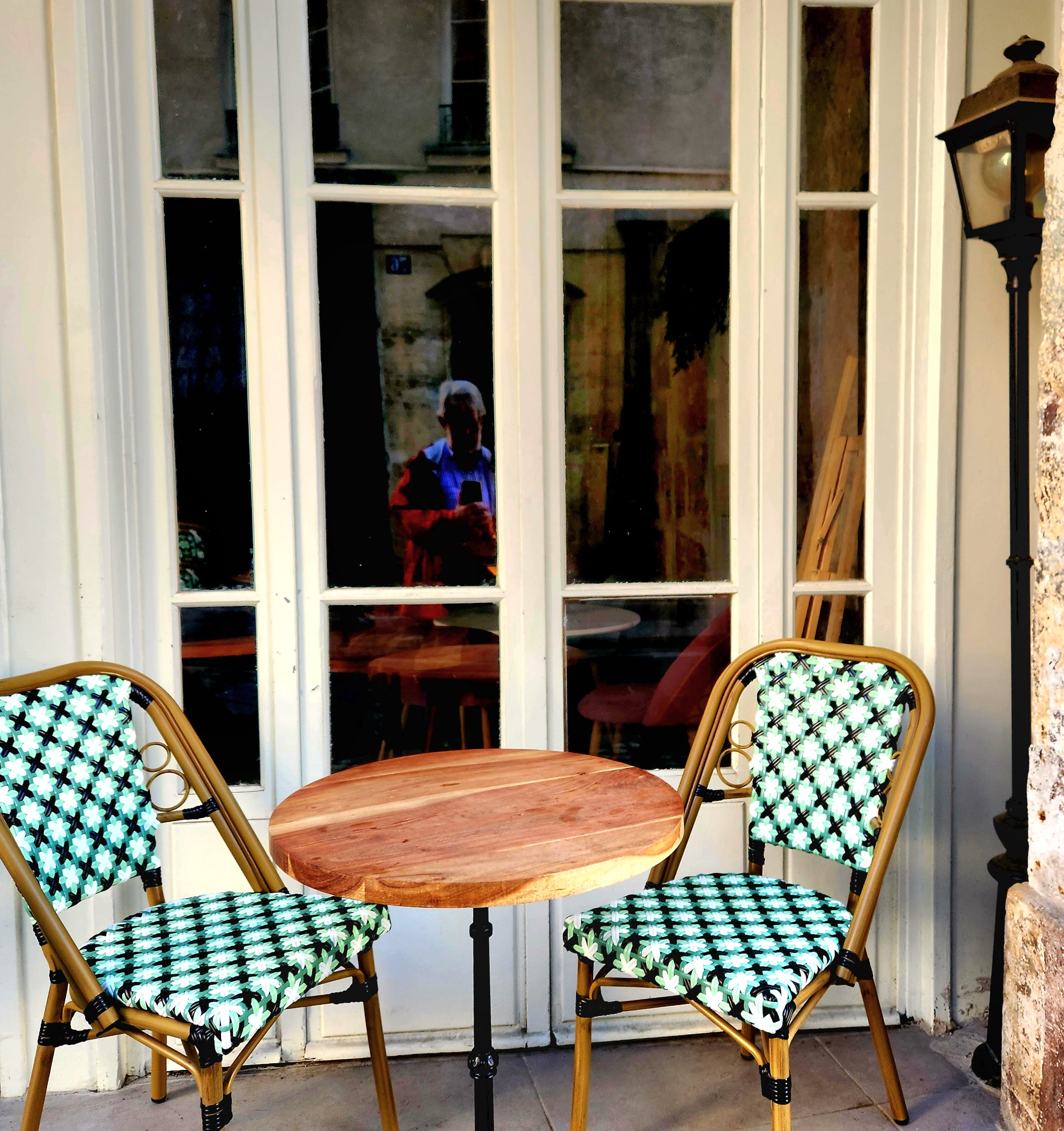 And so, for this 100th Paris Window I’m not posting only one, but several, all with ME in the windows one way or another. I wonder if any Parisians in there were looking out and thinking (in French, of course, and with a little disdain), “Crazy American, taking pictures of WINDOWS!”