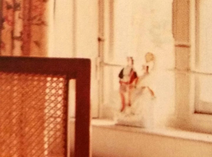 And when I needlepointed, based on the painting, “re-presenting” the Grant painting in which he had “re-presented” the Staffordshire figures on his window sill, I stitched for some compelling reason I couldn’t then even articulate – but I knew I had to do it. (Thank you, Francesca Fuchs, for helping me begin to articulate it now).